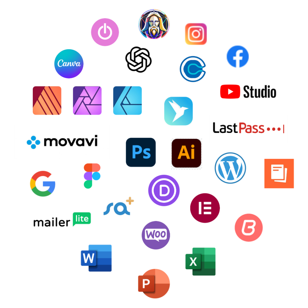 Az üzleti siker eléréséhez elengedhetetlen a megfelelő technológiai eszközök használata. Olyan szoftverekkel dolgozom, amelyek segítségével maximalizálható a hatékonyság, javítható a kommunikáció és lenyűgöző vizuális tartalmak hozhatók létre. Íme néhány terület, ahol különösen erős a szakértelmem: